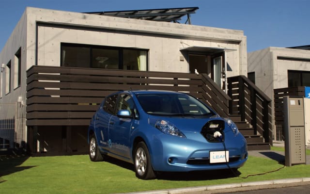 日産自動車のEV「リーフ」1台を標準装備したRC住宅を販売し、各戸に専用の充電スタンドも付設しました。太陽光発電システムや家庭用燃料電池「エネファーム」を導入。走行中に二酸化炭素(CO2)を排出しないEVとの組み合わせにより、生活上のCO2排出量を従来に比べて7~8割削減する事を目標としました。