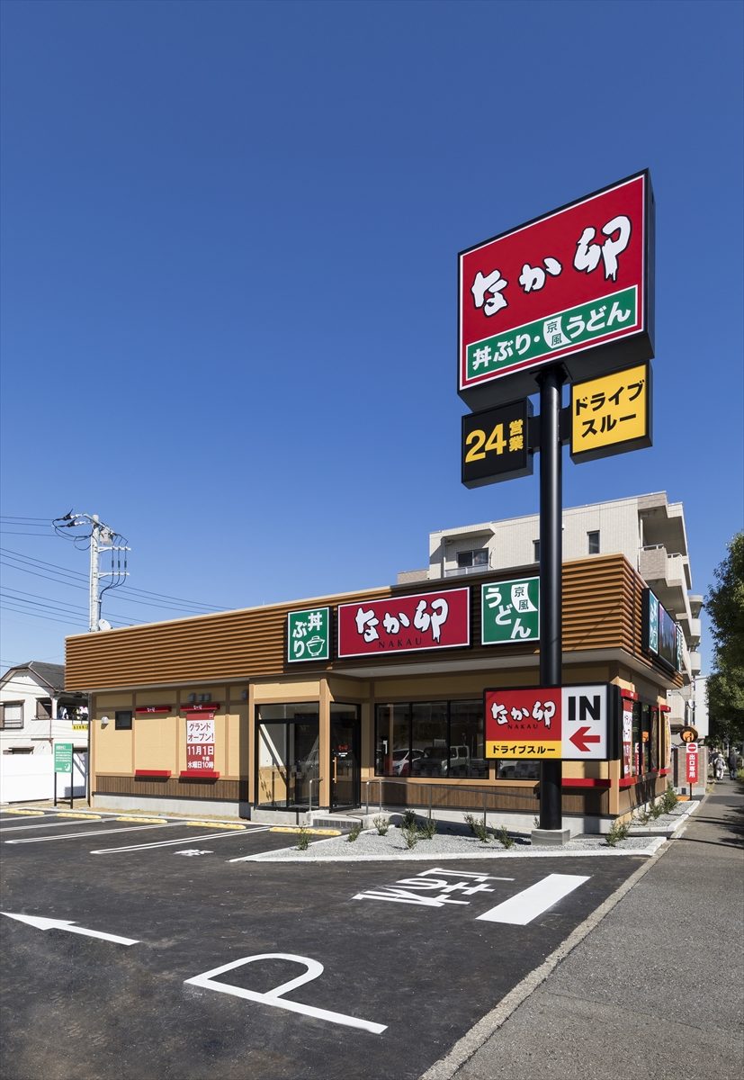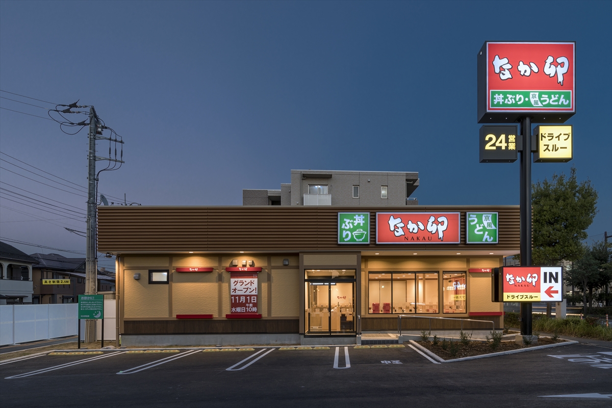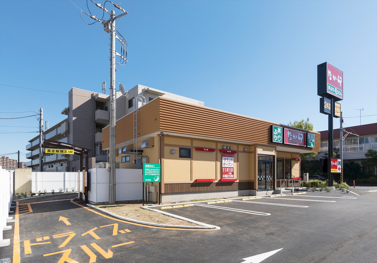 旧店舗「すき家」からドライブスルー付「なか卯」に建て替え新規オープンしました。