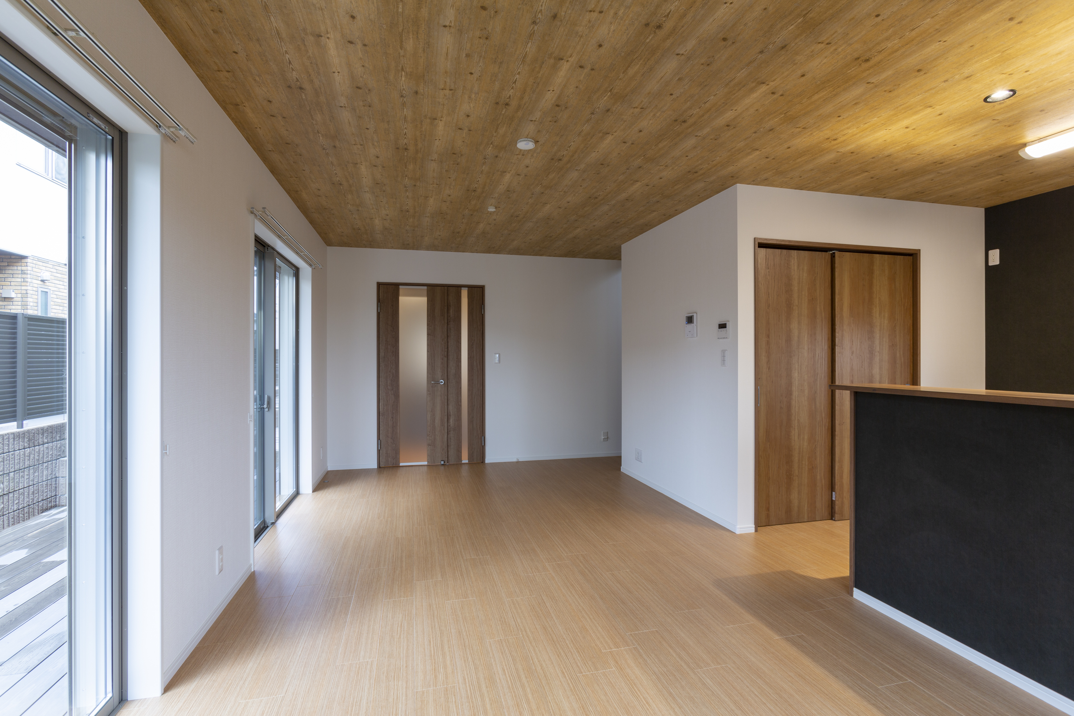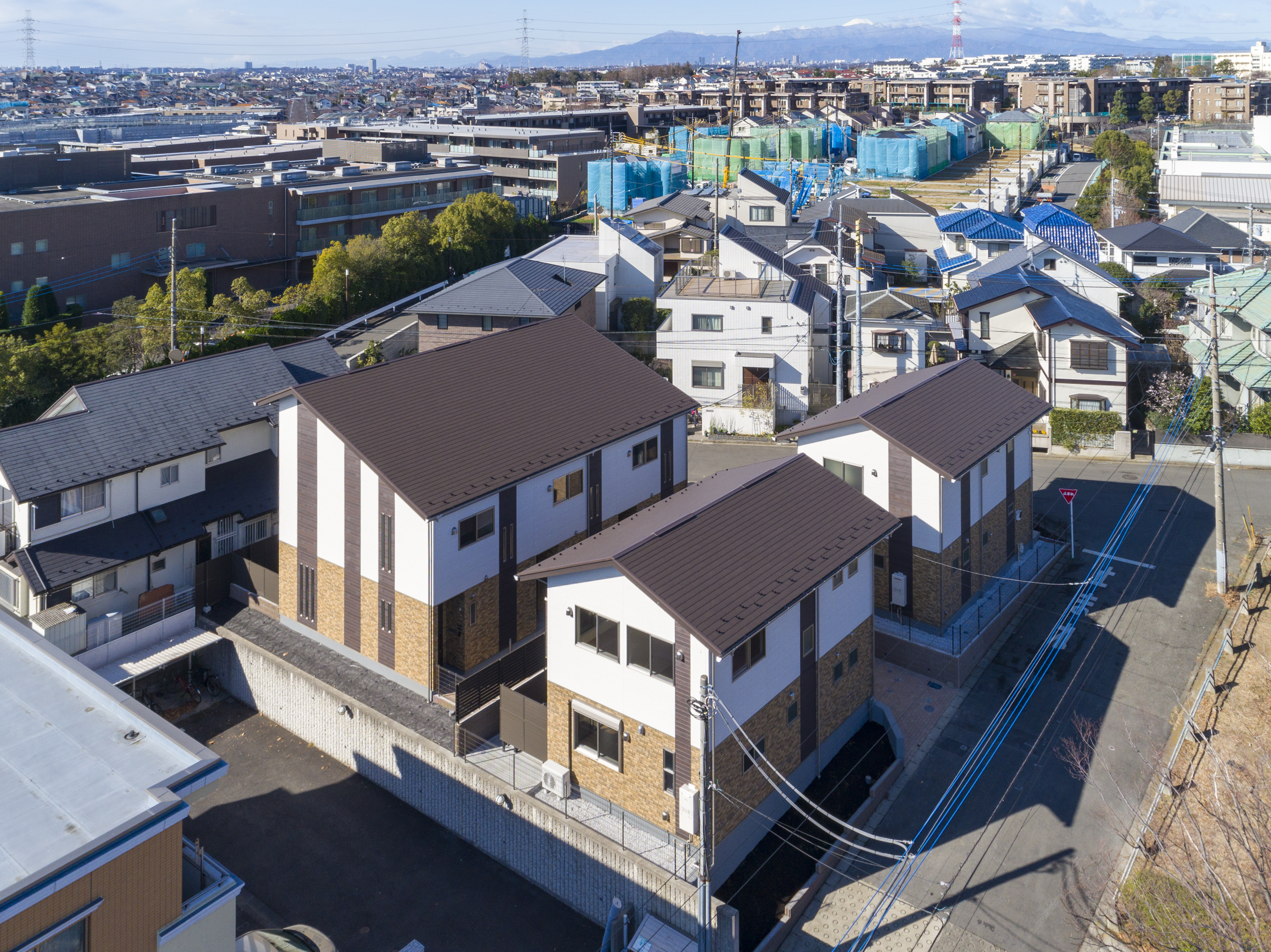 あざみ野の閑静な住宅街に『パークヒルあざみ野』が完成しました。LDKは壁一面をアクセントクロスに、また天井にも木目調のクロスを採用し、オシャレな空間となっています。各戸に専用庭もあり、家族がくつろげる家となっています。