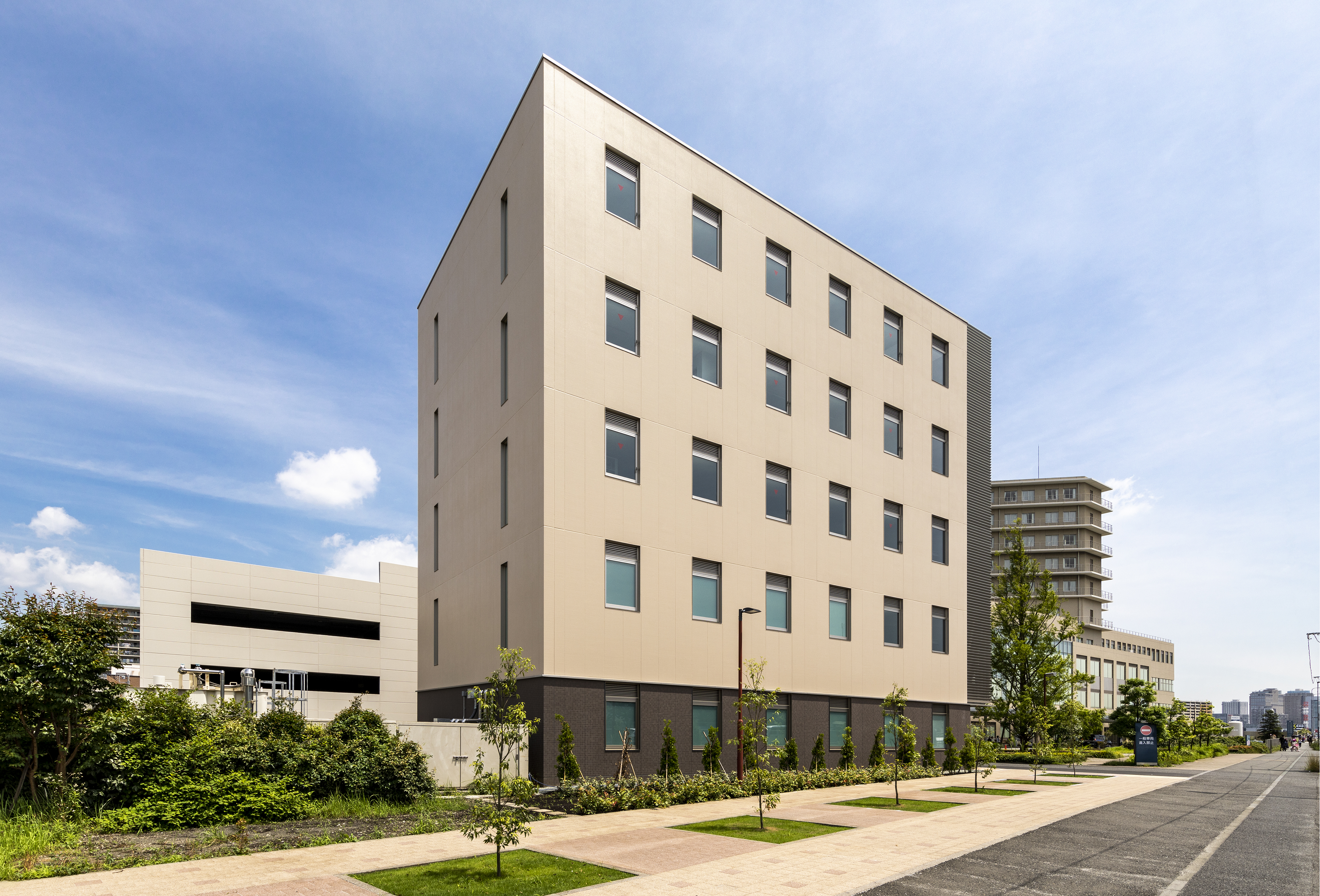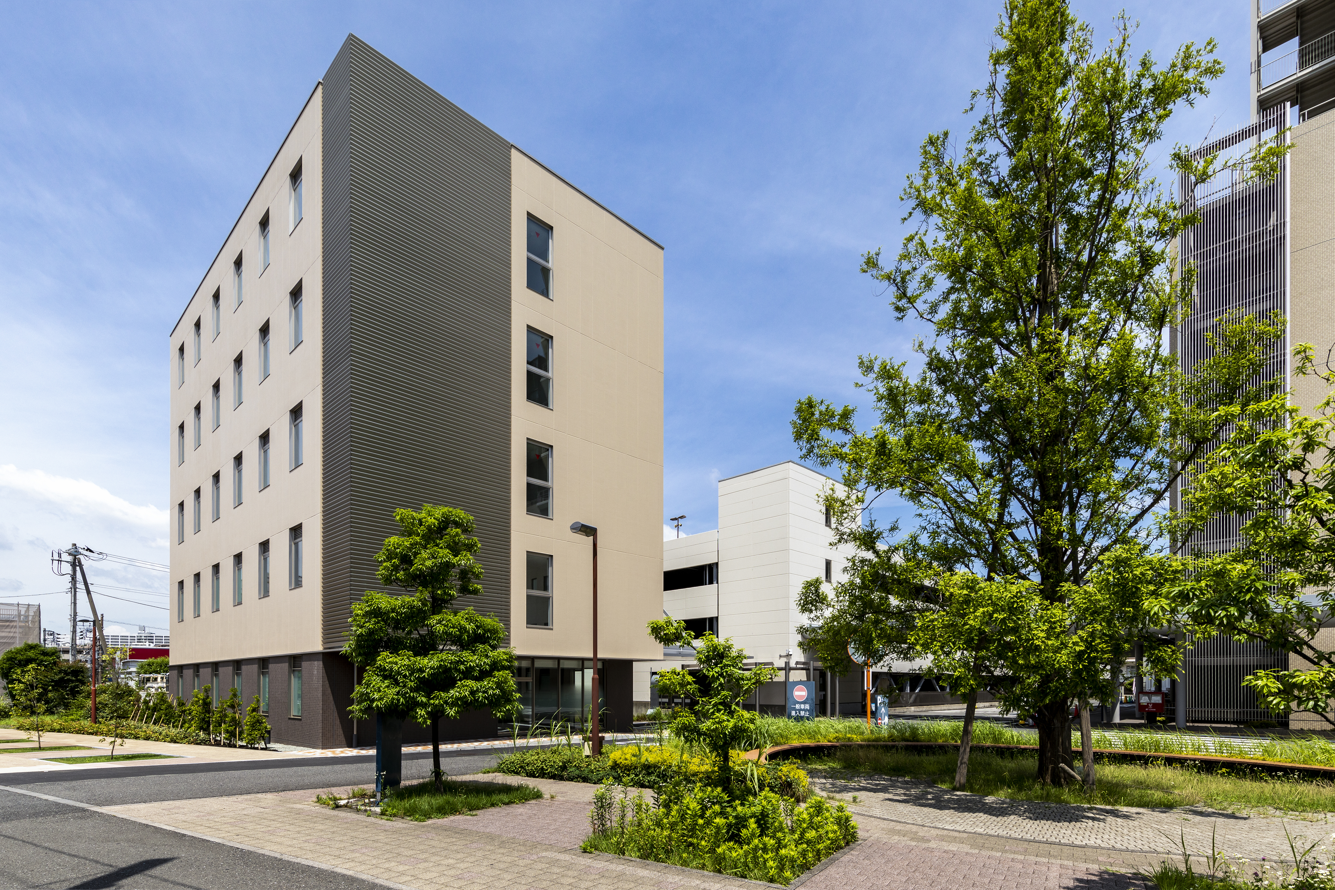 地域医療を担う横浜市の中核病院として2007年に開院し、救命救急センター・集中治療センターなどの急性期医療と様々な高度専門医療を中心に提供する「済生会横浜市東部病院」本棟内の診療機能拡充のために、その他の機能の一部を移設することを目的として構内に新棟が建設されました。