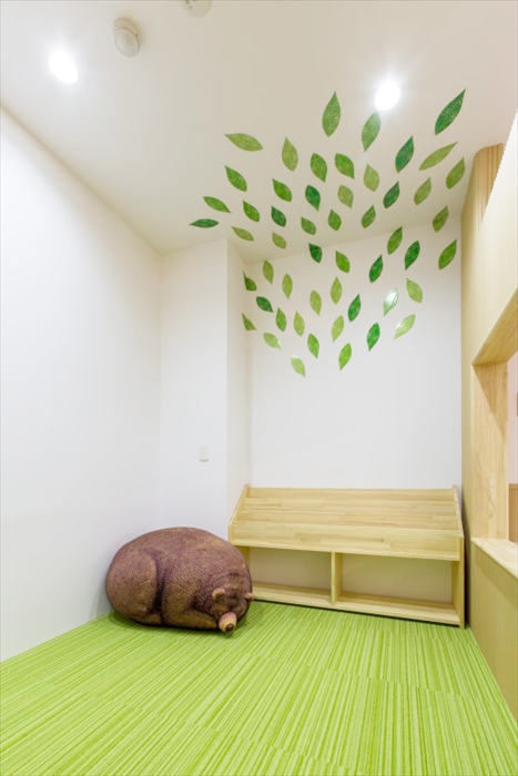 また、室内に施されているロゴやサインは園オリジナルで園児も預けるご家族も“通いたい”と思わせる工夫が内外に表現されています。