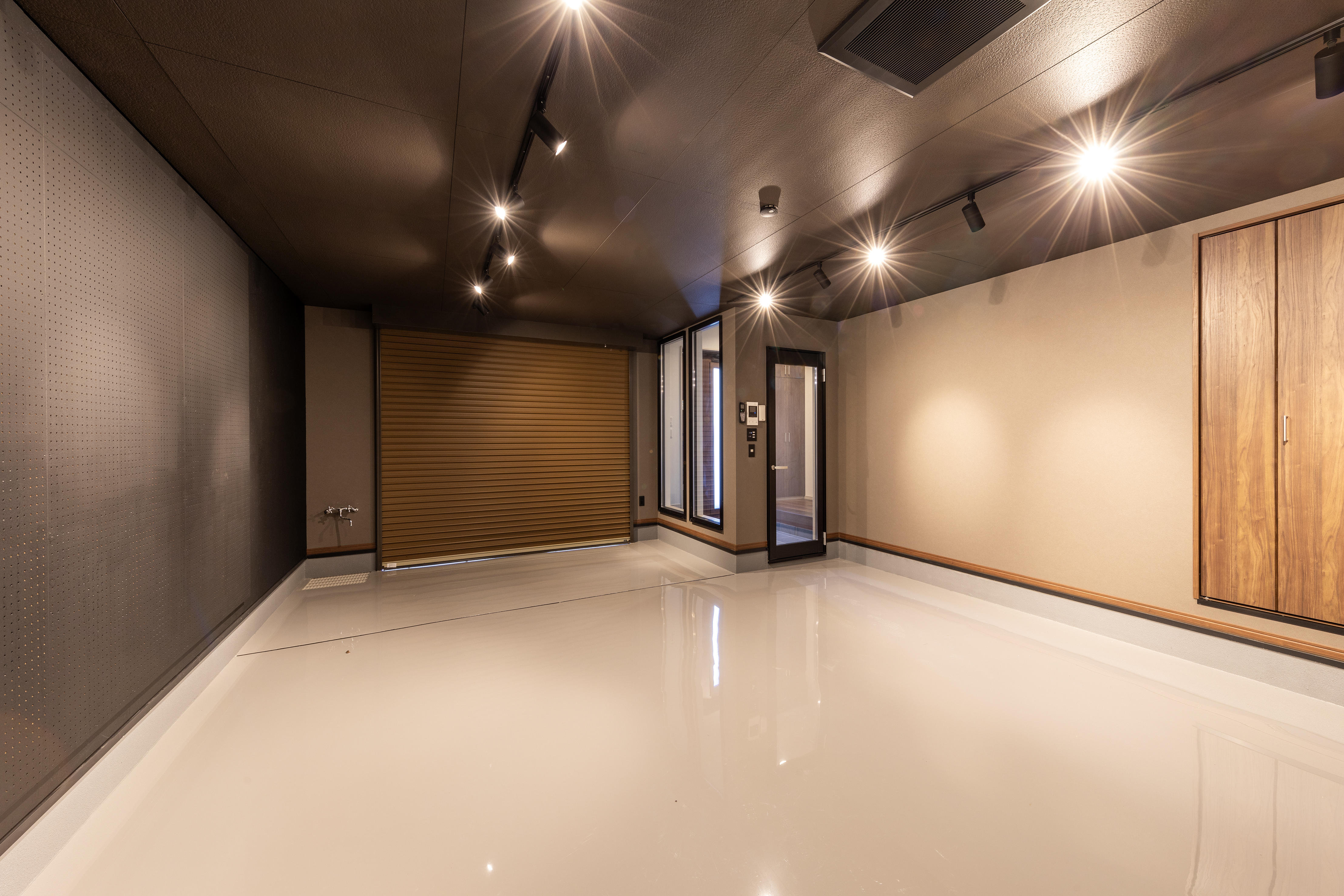 ガレージ内部は2台分の駐車スペースを確保、大切な車やバイクを室内で安全に保管し盗難などから車を守ることができます。