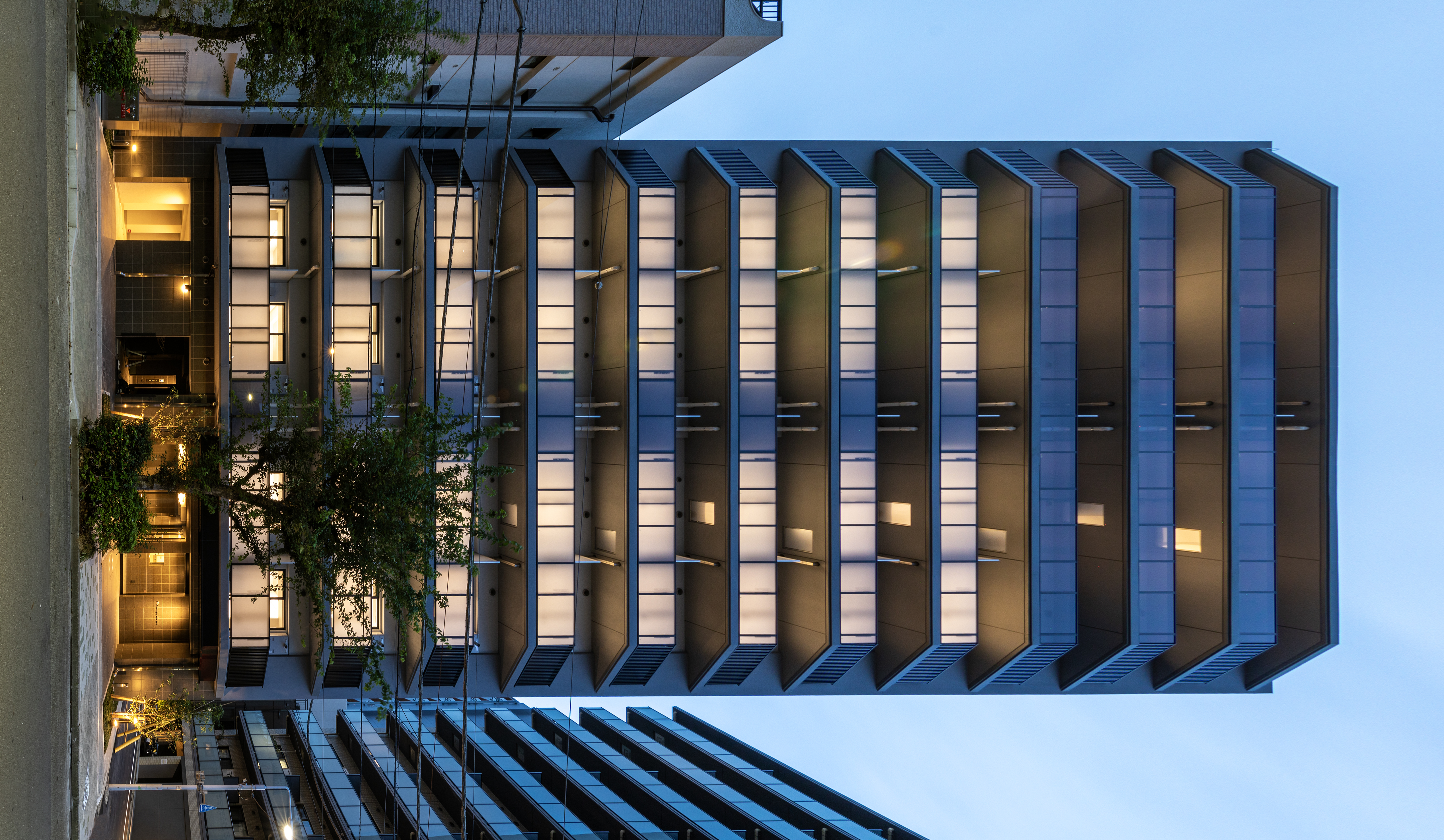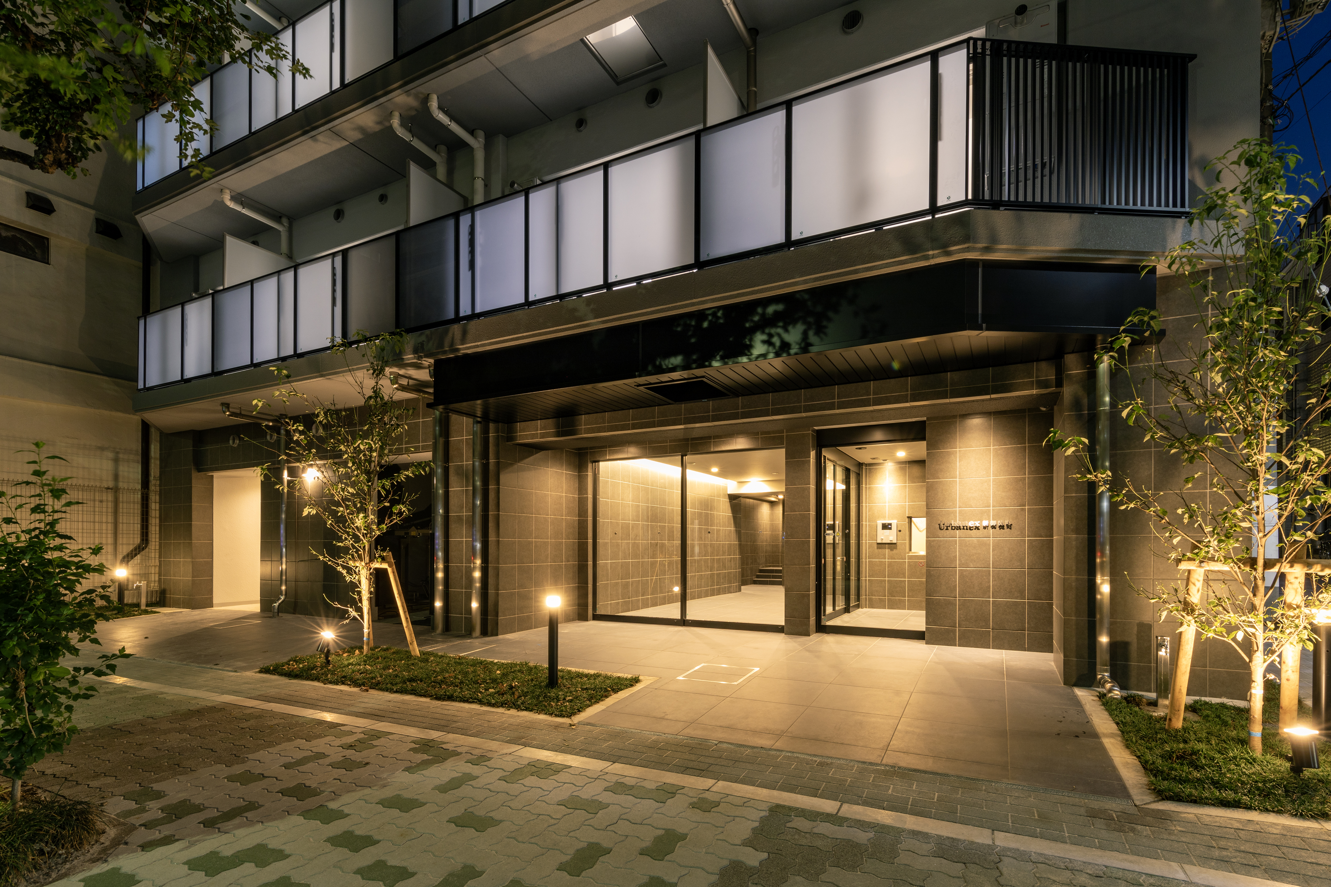 エントランスは重厚感を持たせつつ、建物全体としてはシンプルなラインを強調し仕上げています。入居者層は単身者からファミリーまで幅広く設け1DK~3LDKで全8タイプのバリエーションで構成しています。