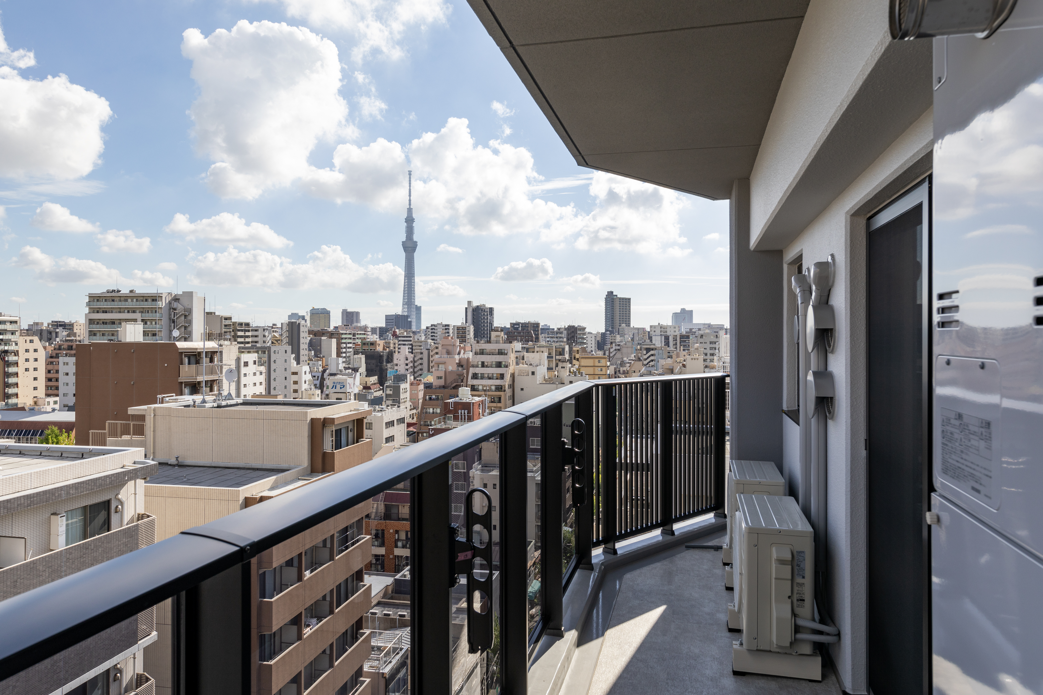 上層階からは東京の街が一望できスカイツリーを望む眺望も建物のポイントです。