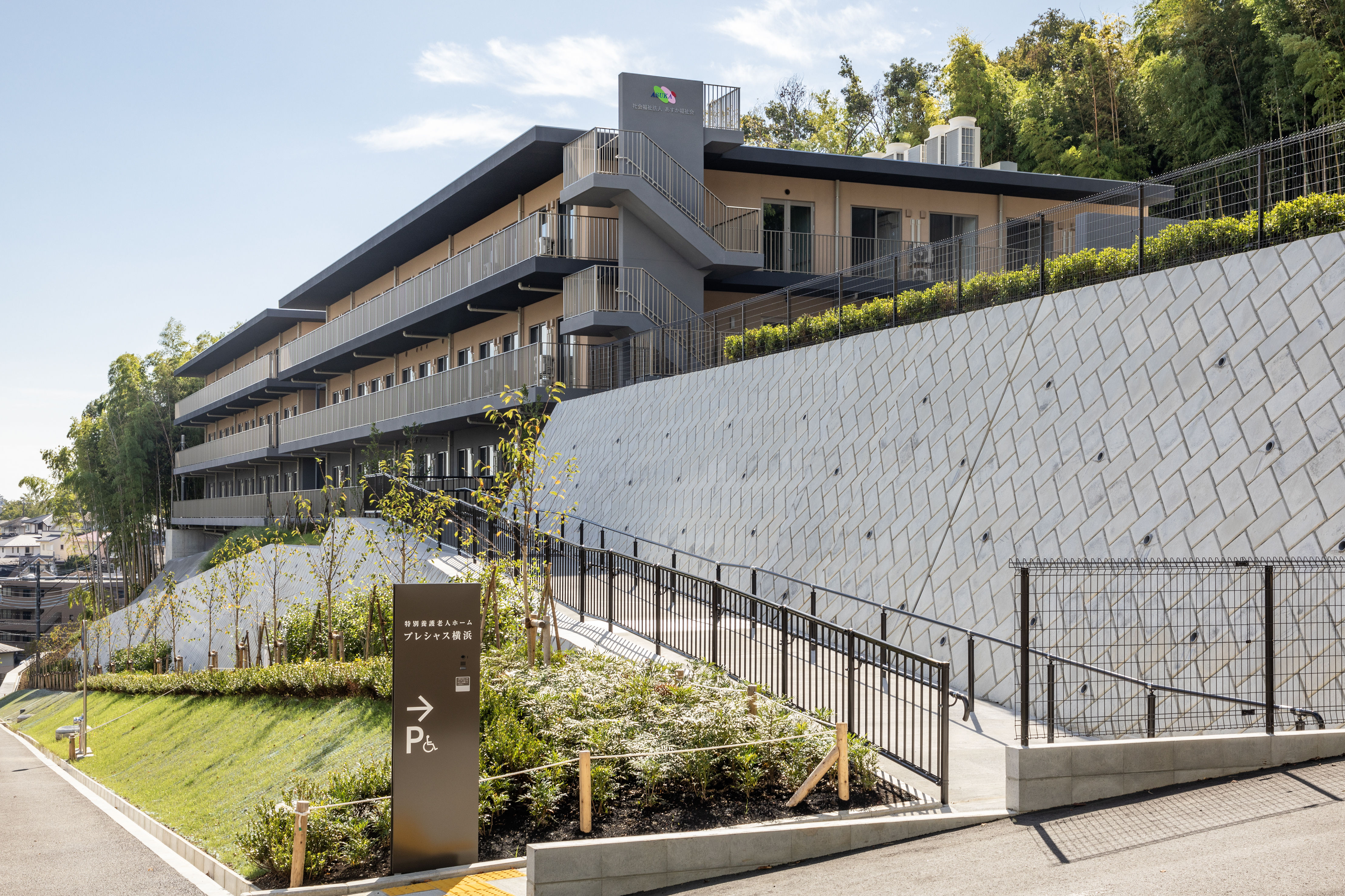 神奈川県立元石川高校の向かい、新たに居室数120床(うち20床はショートステイ)の大型施設特別養護老人ホームが竣工致しました。