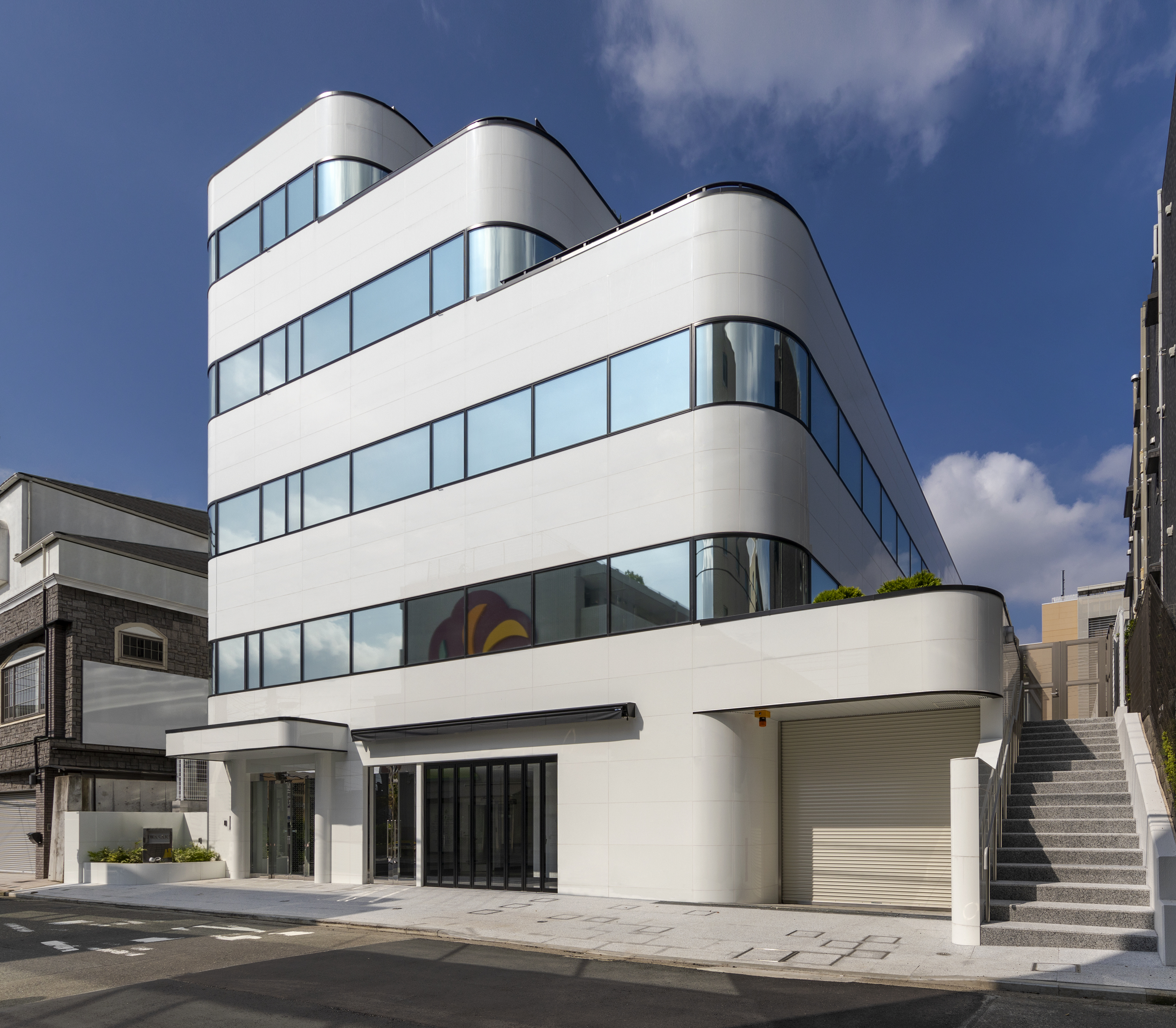 全国に900店舗以上の美容室「HAIR SALON IWASAKI」を展開する株式会社マイク・イワサキ様とグループ会社の新社屋が2020年6月に竣工しました。たまプラーザ駅南口から徒歩3分程の好立地に白い外壁と大きなガラス面で明るく清潔感に溢れる建物となりました。