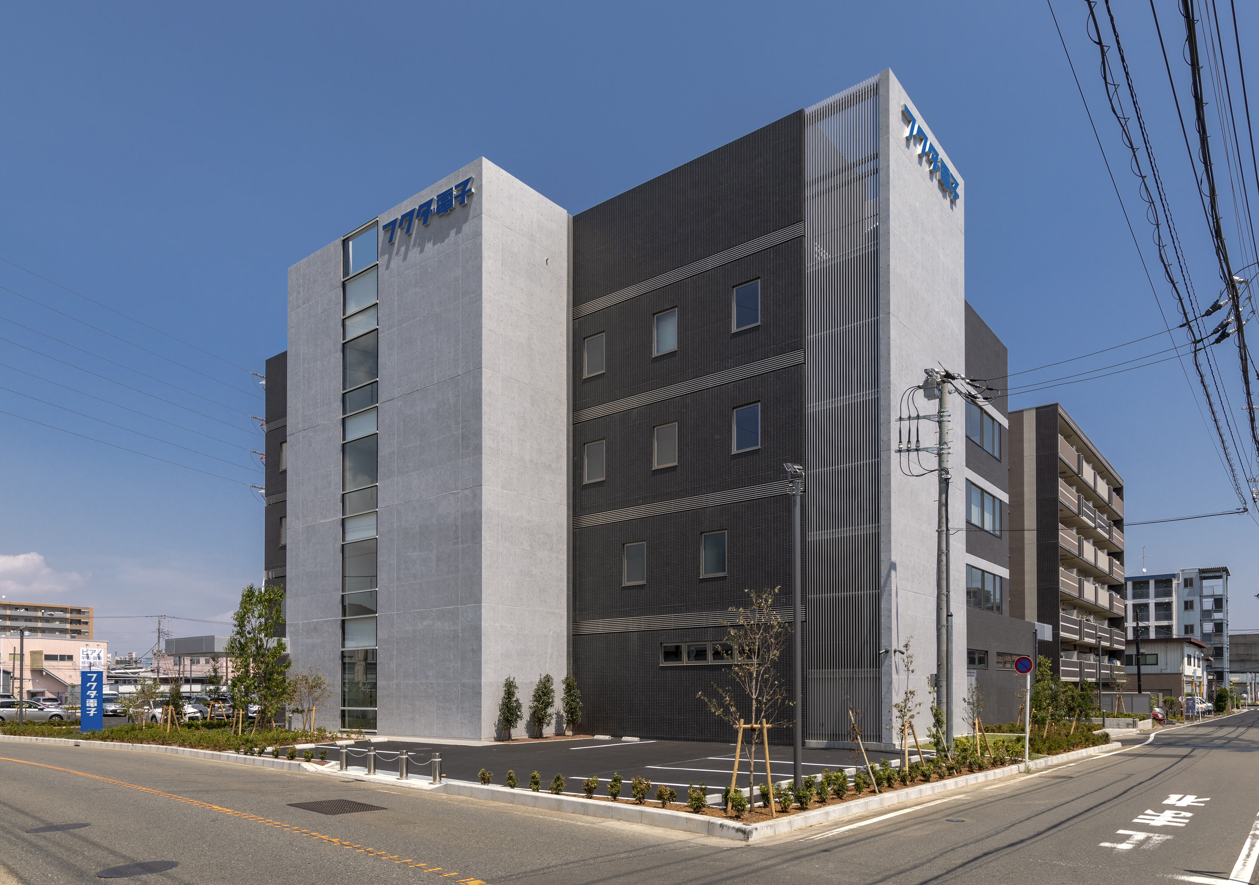 医療機器メーカー「フクダ電子株式会社」のグループ企業として、在宅医療サービスを提供しているフクダライフテック横浜株式会社様の新社屋が今年7月に竣工しました。外観では、一部にコンクリート打ち放しやカーテンウォールを取り入れデザイン性を高めたオフィスビルとなっています。
