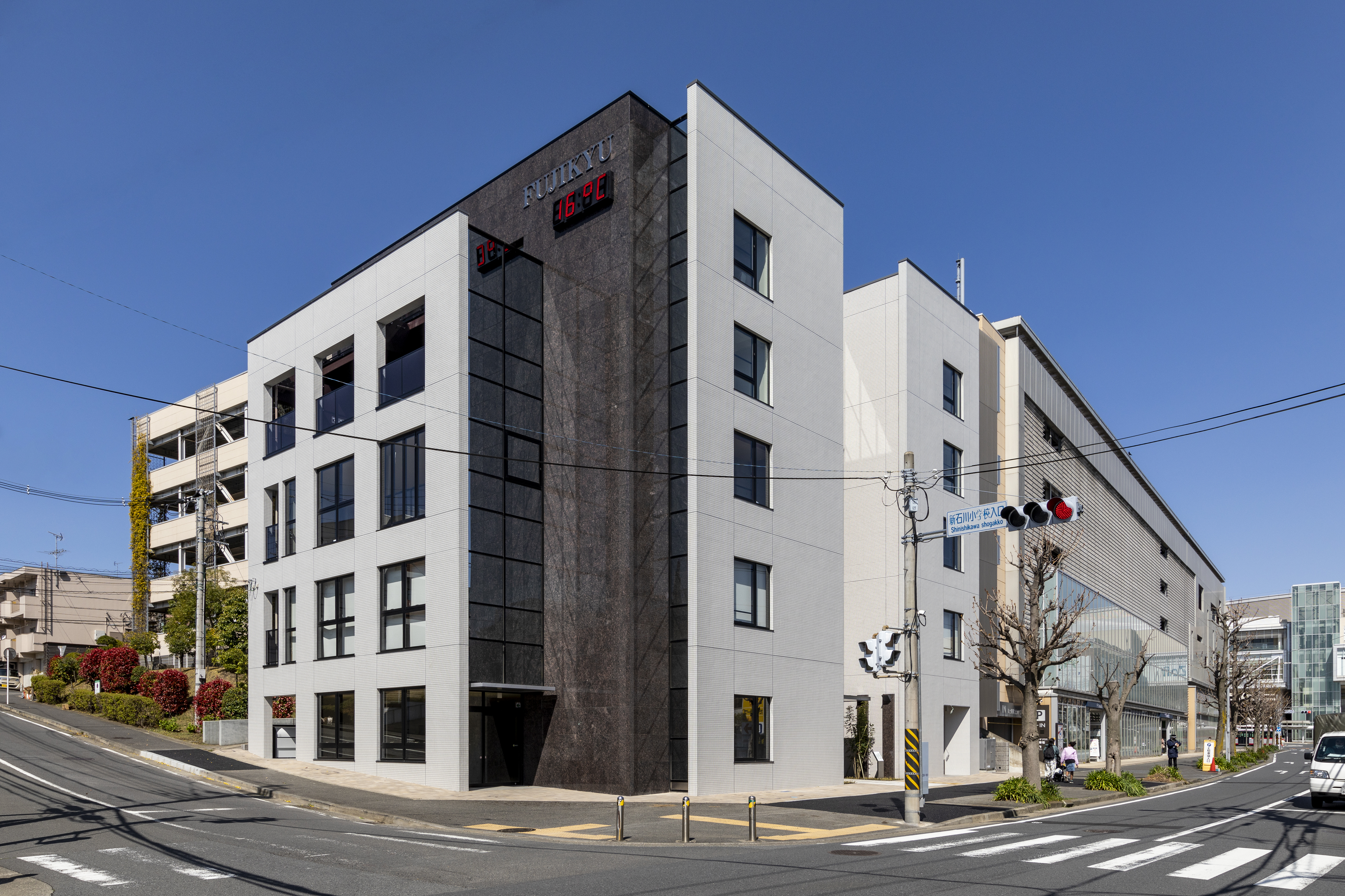 たまプラーザに完成したRC造5階建の店舗と共同住宅の複合施設。