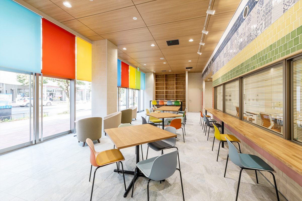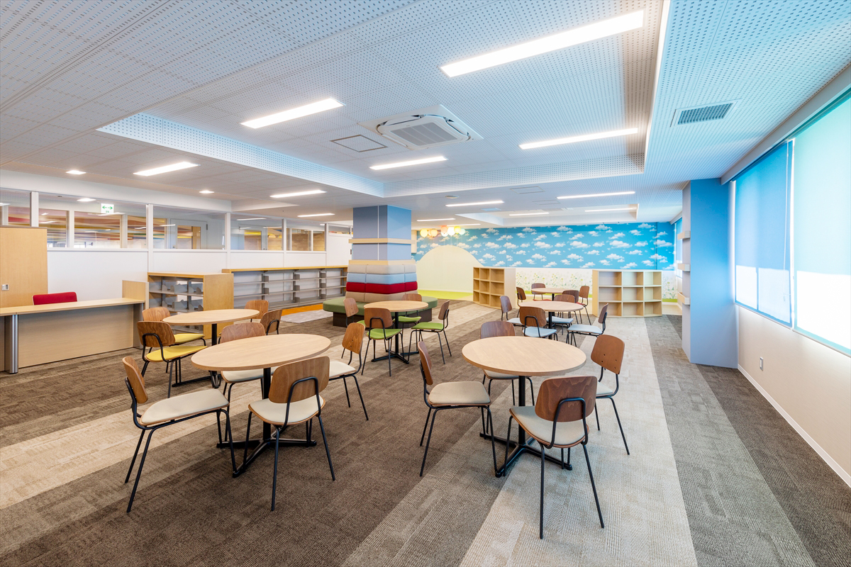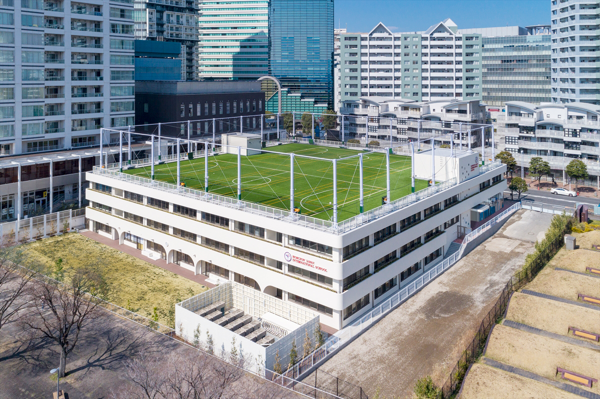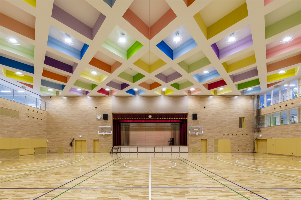 幼稚園から高校までの、特定の民族・宗教に偏らない多国籍の生徒を受け入れており、複数の国際認証を取得するなど、幅広い教育的選択肢を持つインターナショナルスクールとして人気を博している「ホライゾンジャパン・インターナショナルスクール横浜校」の新校舎が旧横浜シティーエアターミナル跡地に完成しました。 「多様性」を建物のコンセプトにしており、校舎内の各所で多様性を表現するため、様々な色を使用しています。特に特徴的なのが、建物の中心にある体育館です。1階から3階までの吹き抜けとなっており、カラフルな天井は躯体の梁を活かしたデザインで、見る位置によって印象が変わります。