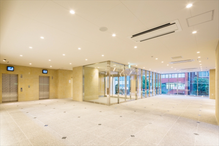正面玄関の大階段やタイル張りの外装は、蒲田駅前でも目を引くシンボリックな建物が完成しました。