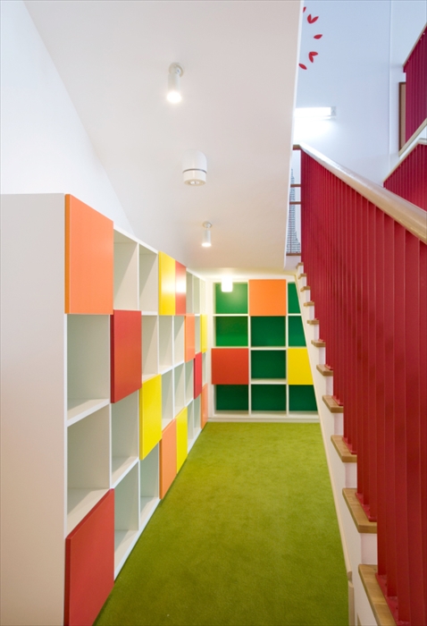 敷地周辺の自然を活かし、植物の栽培や昆虫・小動物にふれる等の経験をしたり、砂・土・水そして気象等の様々な経験を通し生きる喜びや自然・環境の大切さ、さらに命の尊さなど豊かな心を養う保育園として運営されています。建物内部も園児が利用するのに相応しい色使い、トイレに至るまで細やかなデザインが施されています。